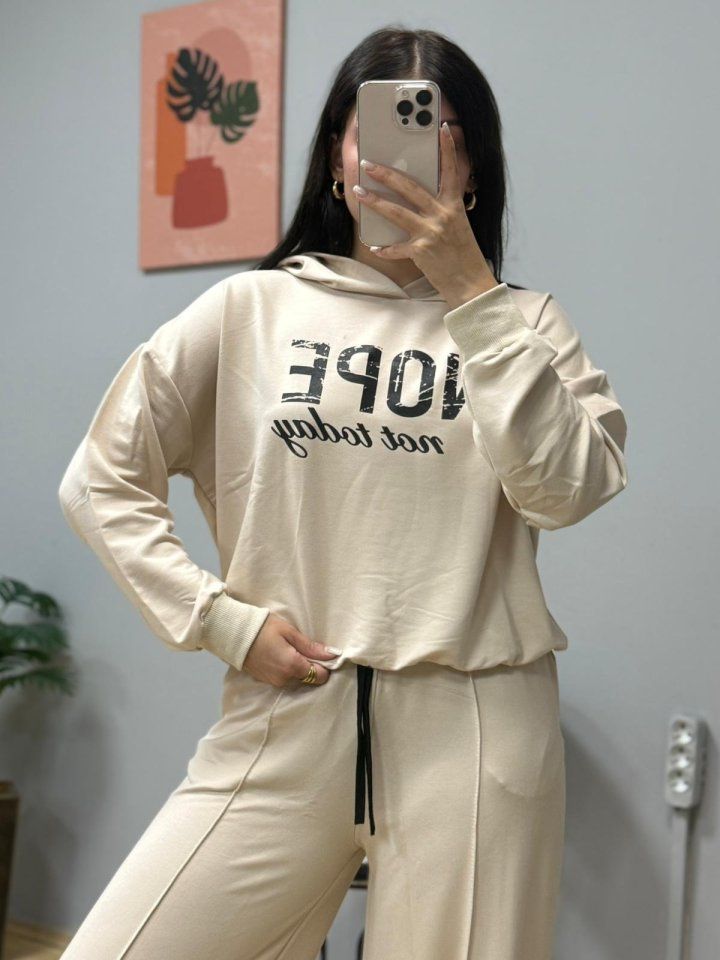 Kadın Uzun Kollu Nope Baskılı Beli Ribanalı Ikili Takım