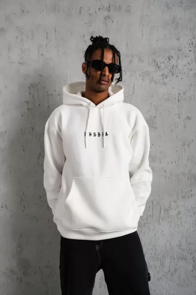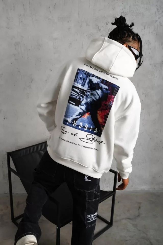 Erkek Astronot Baskılı Kapüşonlu Sweat - Beyaz