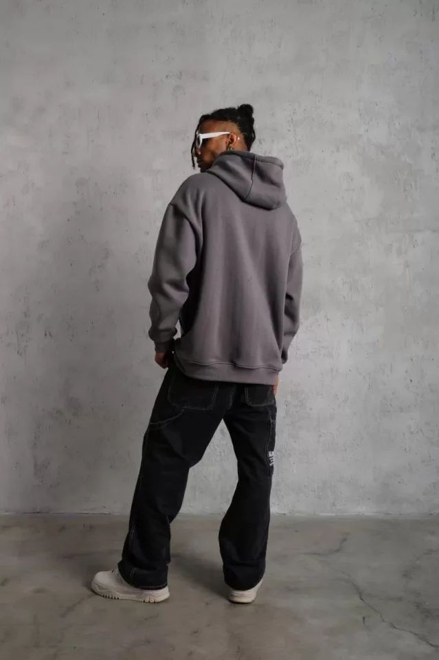 Erkek Düz Kapüşonlu Sweat - Gri