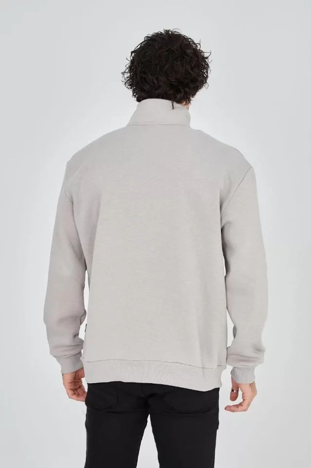 Erkek Yarım Fermuarlı Baskılı Sweat - Boyalı Gri
