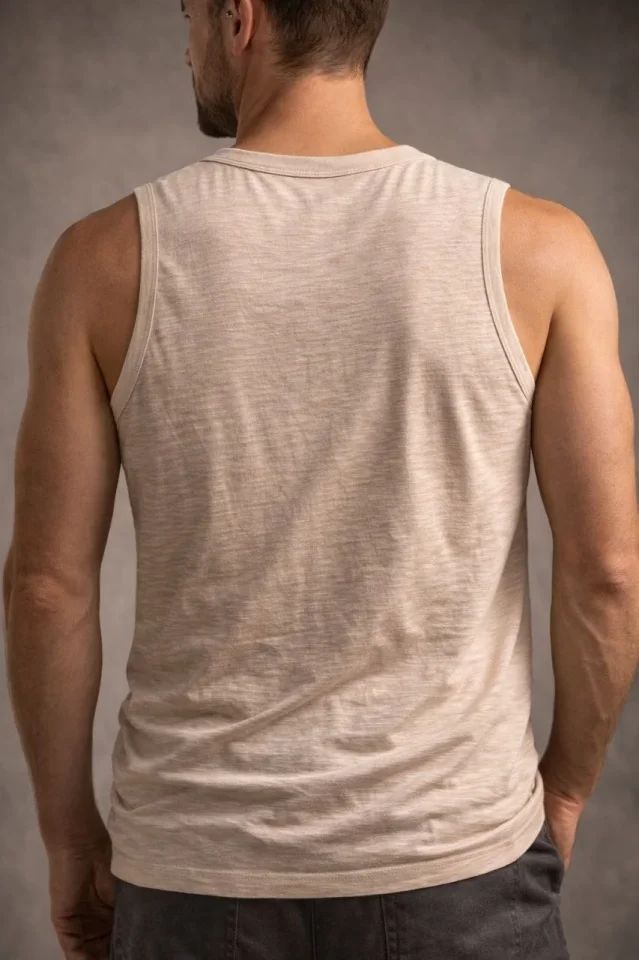 Erkek Flamlı Kumaş Sıfır Kolsuz Atlet Basic Spor Üst, Günlük Ve Fitness Kullanımına Uygun - Taş