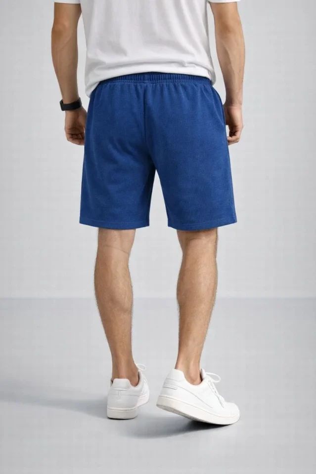 Erkek Otoban Dokuma Şort Beli Lastikli Bağcıklı, Cepli, Rahat Kesim Günlük Yazlık Şort - İndigo