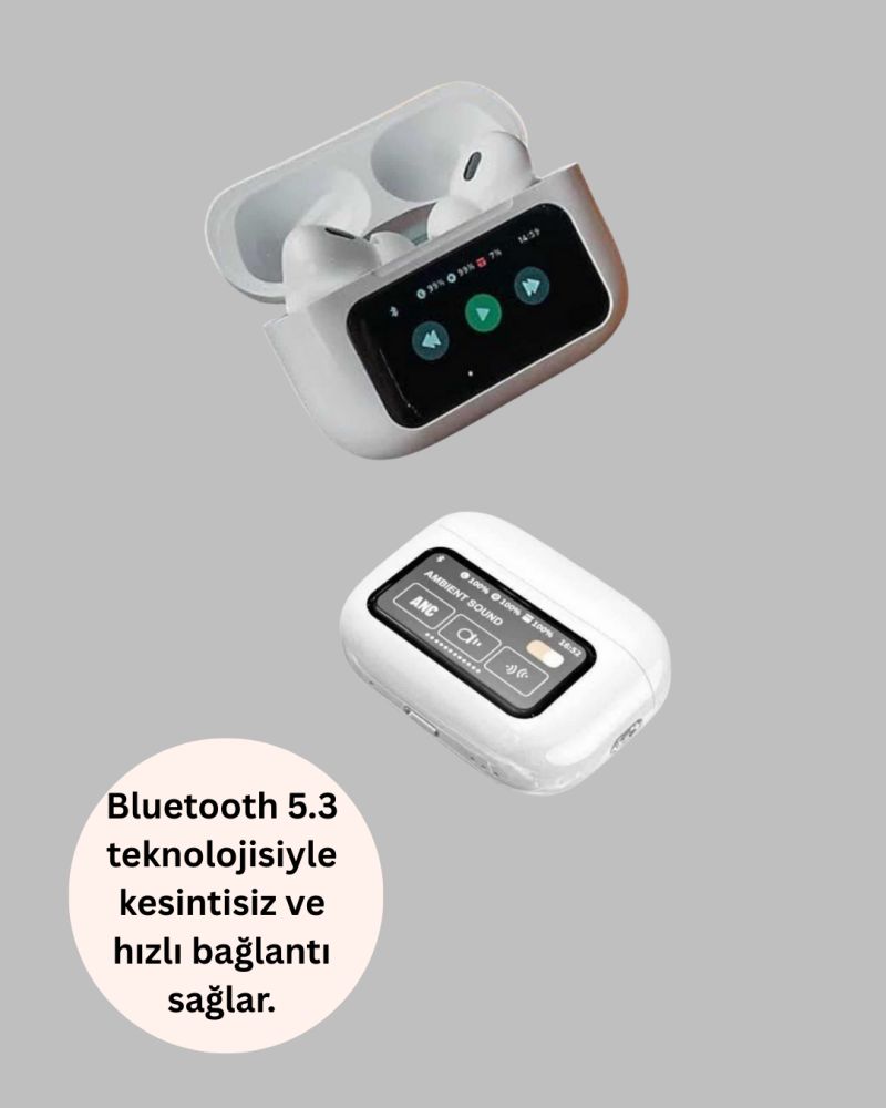 Gürültü önleyici Bluetooth kulaklık, üstün ses teknolojisi ile müzik ve çağrı deneyimini zirveye taşıyor. ANC özelliği sayesinde dış ortam gürültüsünü ortadan kaldırarak yalnızca istediğiniz sese odaklanmanızı sağlar. Tüm akıllı telefonlarla uyumlu olan bu kulaklık, Bluetooth teknolojisi sayesinde kablosuz özgürlük sunar. Ergonomik tasarımı, uzun süreli kullanımlarda konfor sağlar. Güçlü bataryası, tek şarjla saatlerce müzik dinlemenize veya telefon görüşmesi yapmanıza olanak tanır. Dijital ekranlı şarj kutusu, pil seviyelerini kolayca takip etmenizi sağlar. Suya ve tere dayanıklı yapısı, spor sırasında veya yağmurlu havalarda dahi güvenli kullanım imkânı verir. Kulakiçi sensörleri, kulaklığı çıkardığınızda müziği durdurur, tekrar taktığınızda kaldığınız yerden devam ettirir. Dokunmatik kontrol özelliği ile şarkı değiştirme, ses ayarı ve çağrı yanıtlama gibi işlemler zahmetsiz hale gelir. Dahili mikrofon, net ve kesintisiz telefon görüşmeleri yapmanıza olanak tanır. Hem iş hem de eğlence için ideal olan bu kulaklık, modern tasarımı ile her ortamda şıklığınızı tamamlar.