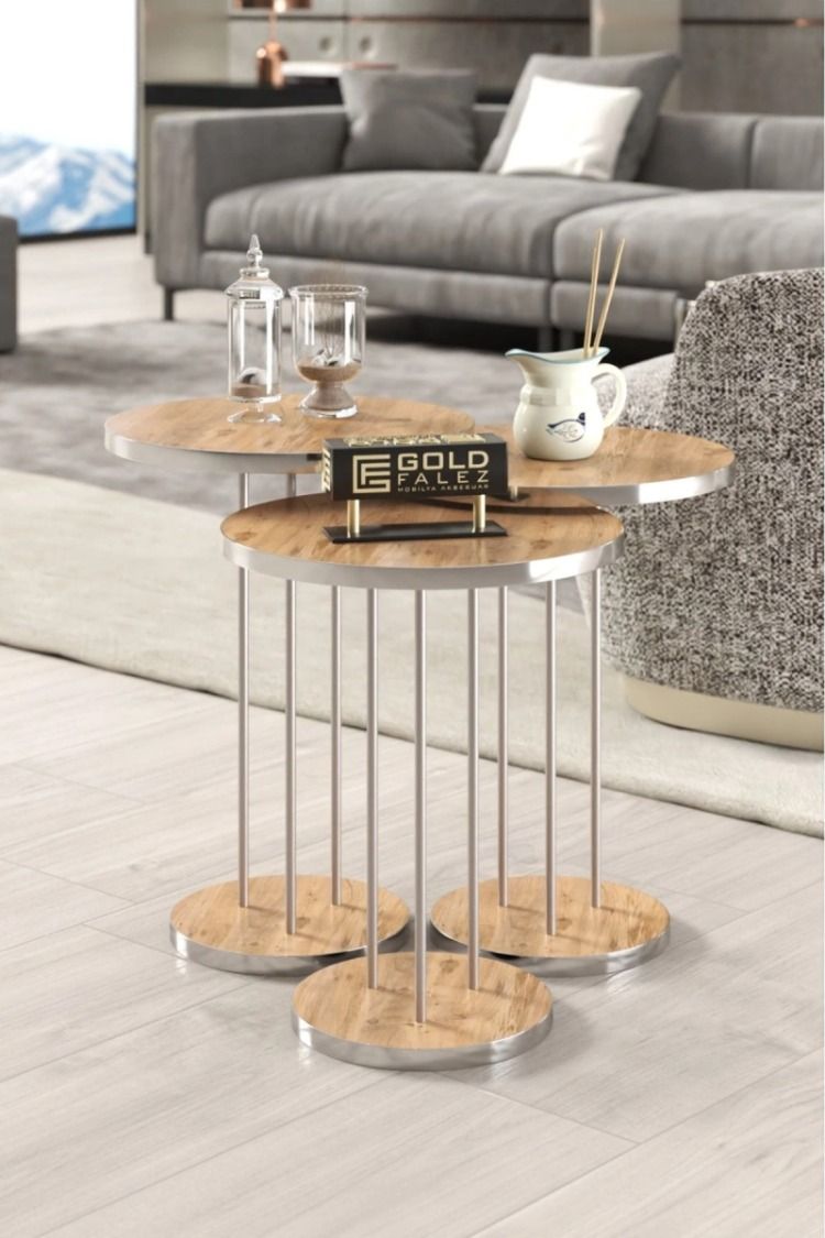 Evinizde hem fonksiyonelliği hem de estetiği bir araya getirin. Cevizin sıcak ve doğal dokusunu, gümüş rengi metal ayakların modern ve endüstriyel duruşuyla birleştiren Terra serisi, yaşam alanınıza sofistike bir hava katar. İç içe geçebilen yapısı sayesinde alandan tasarruf sağlarken, ihtiyaç anında üç farklı servis yüzeyi sunar. Minimalist tasarımı ve dayanıklı yapısıyla modern salonların en şık tamamlayıcısı.