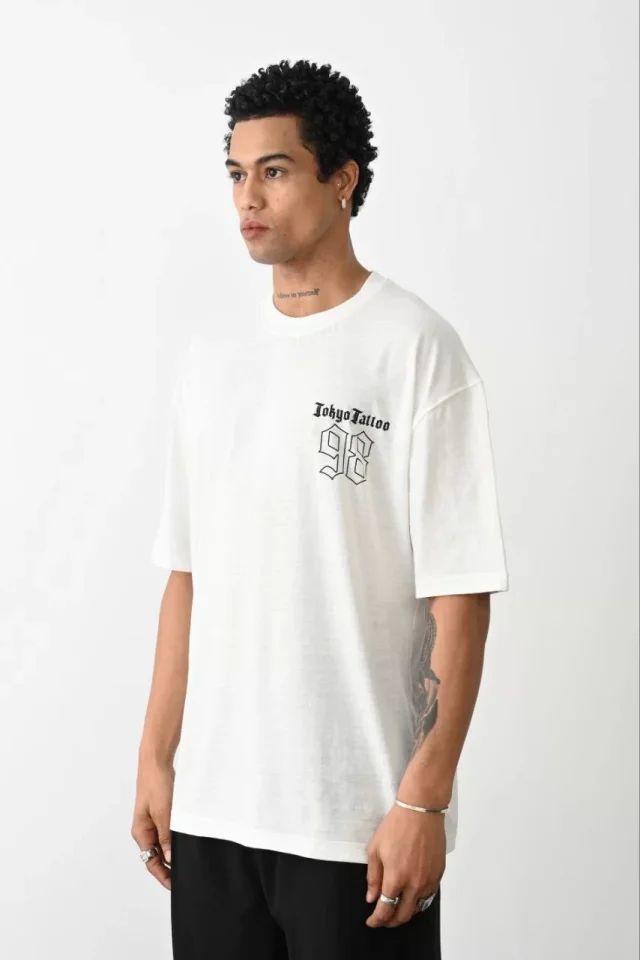 Unisex Baskılı Oversize T-Shirt - Beyaz