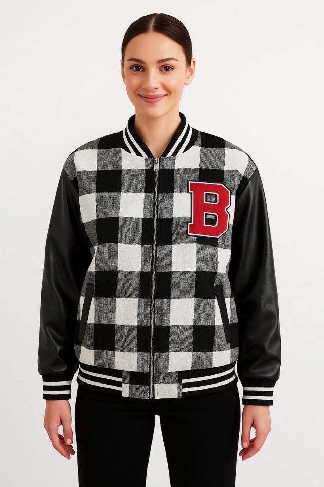 Kolları Suni Deri Içi Astarlı Oduncu Kolej Içi Ceket - Gri