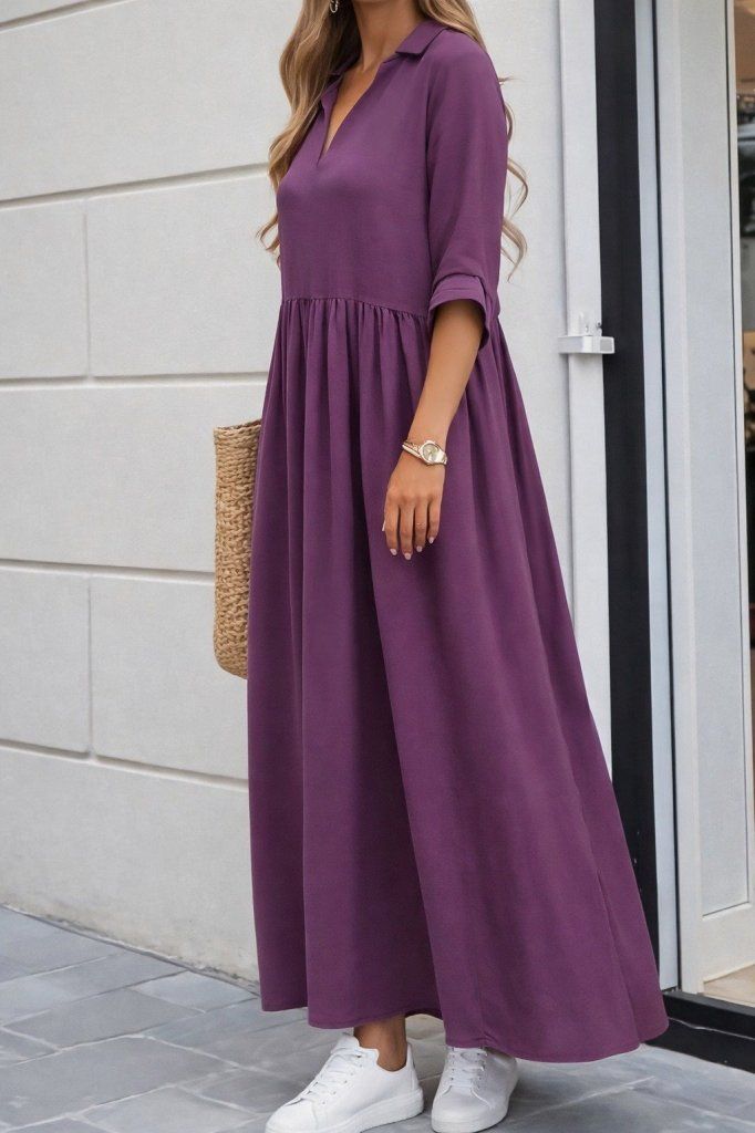 Kadın Truvakar Kollu V Yakalı Yırtmaçlı Uzun Aerobin Elbise
