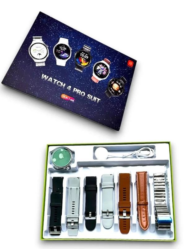 Watch 4 Pro Akıllı Saat Seti - Siyah Kasa ve 7 Farklı Kordon Seçeneği