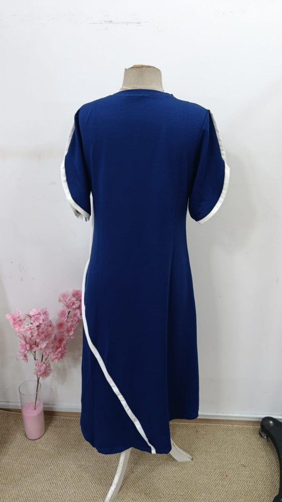 Kadın Kısa Kollu Bisiklet Yaka çift şerit Renk Detaylı Asimetrik Kesim Viskon Iki Iplik Elbise