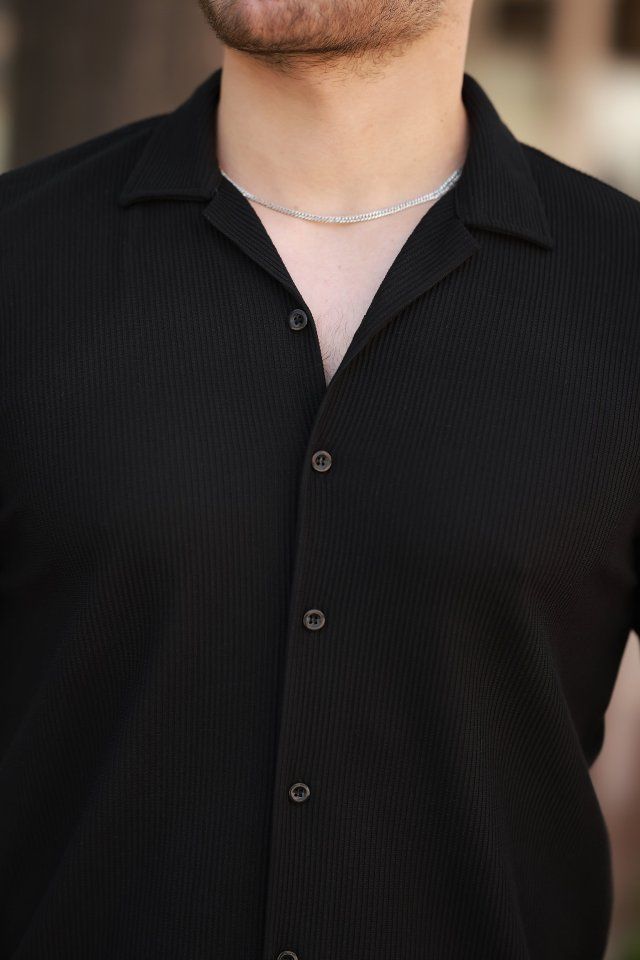 Erkek Ottoman Kumaş Apaj Yaka Kısa Kollu Gömlek