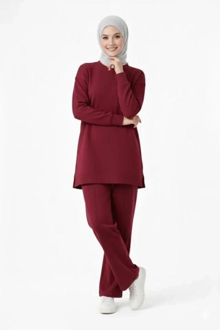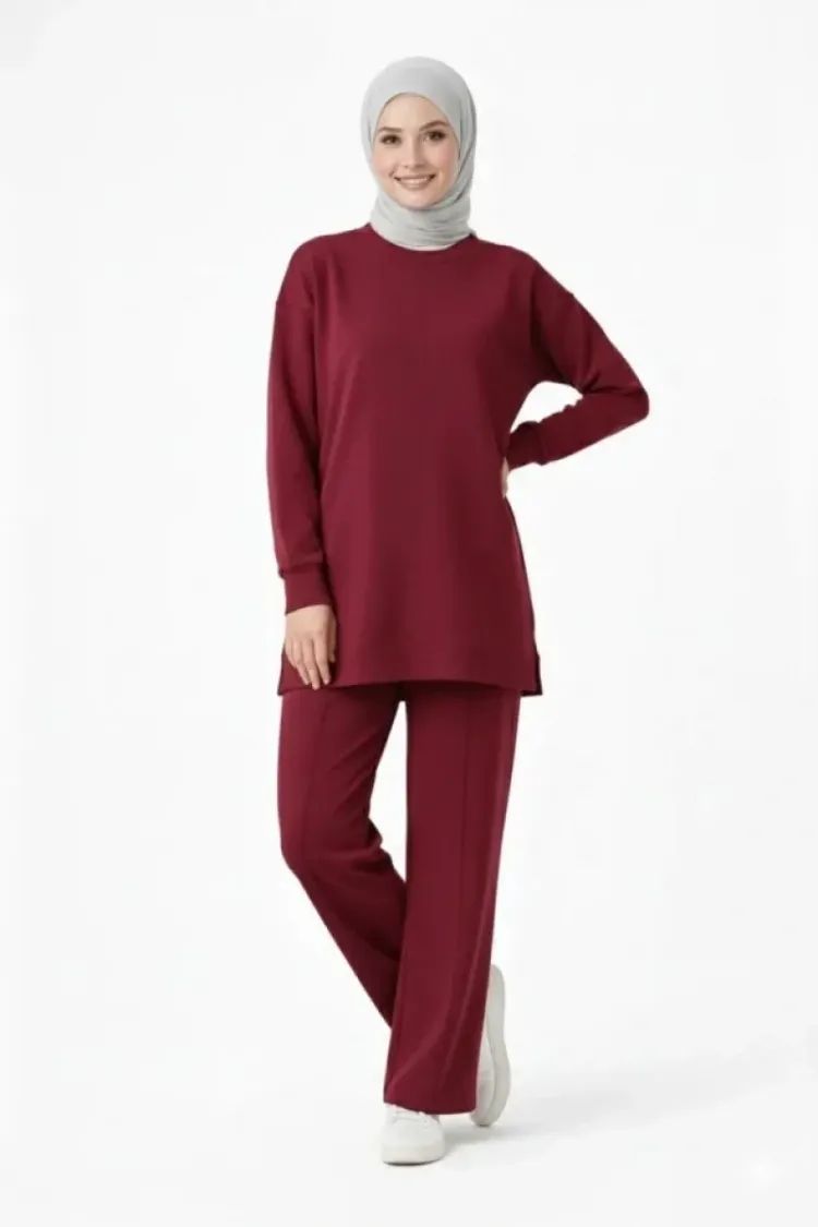 Modern muhafazakar stilin en konforlu halini keşfedin. Modal kumaşın ipeksi yumuşaklığı ile hazırlanan bu ikili takım, dökümlü yapısı ve nefes alan dokusuyla gün boyu ferahlık sunuyor. Yan yırtmaç detaylı uzun tunik, hareketlerinize dinamizm katarken vücut hatlarını belli etmeyen salaş kalıbı sayesinde zarif bir silüet çiziyor. Bordonun asil ve derin tonuyla tasarlanan bu set, hem günlük sosyal aktivitelerinizde hem de şık ev davetlerinde çabasız bir zarafet sergilemeniz için ideal.