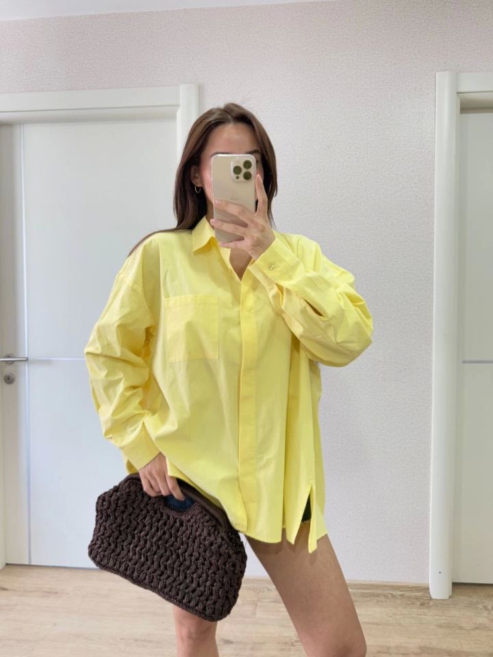 Yakalı Yandan Yırtmaçlı Gömlek - Sarı