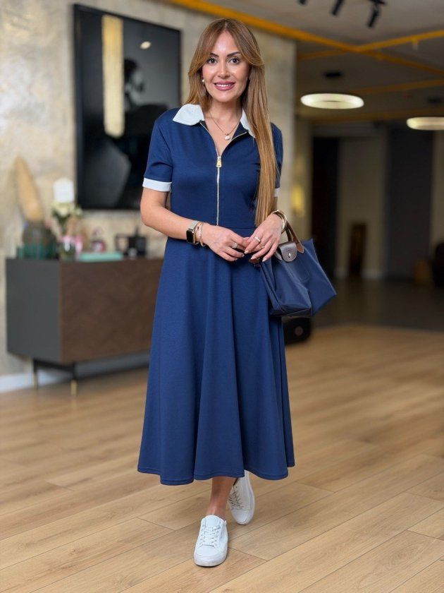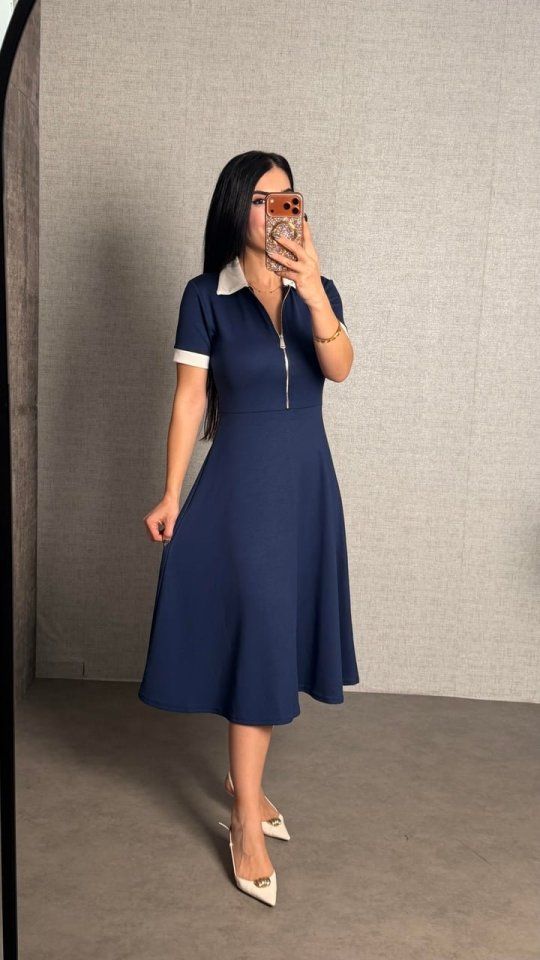 Kadın Kısa Kollu Ribana Ve Fermuar Detay Midi Boy Elbise