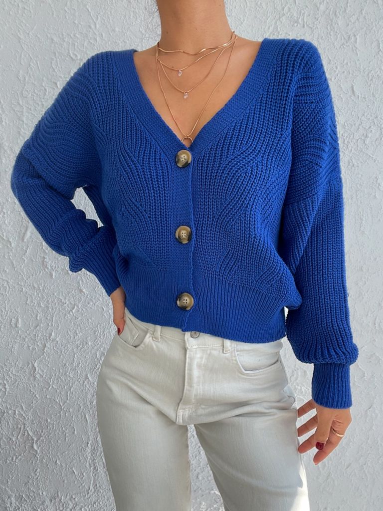 Kadın Uzun Kollu Düğme Detay Triko Hırka