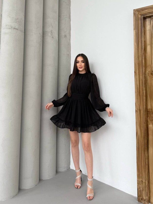 Kadın Yarım Balıkçı Yaka Kolları Transparan Astarlı Full şifon Elbise