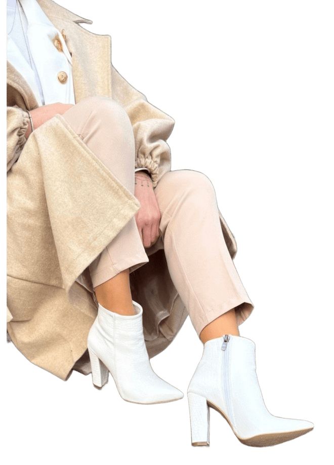 Loora Beyaz Rugan Desenli Topuklu Bot