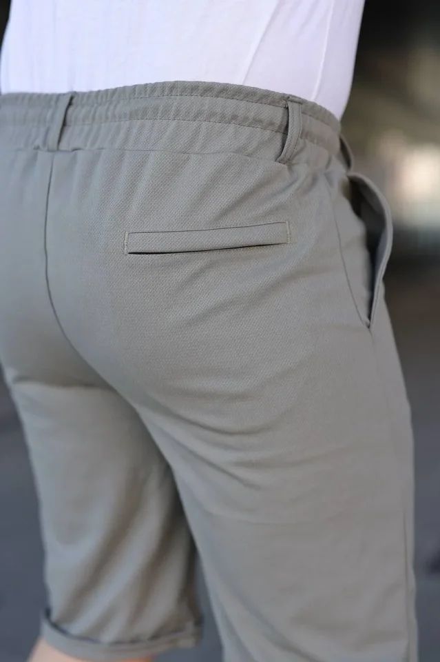 Erkek Diagonel Kumaş Duble Paça Cepli Bağcıklı Bel Lastikli ŞORT - Mint Yeşili