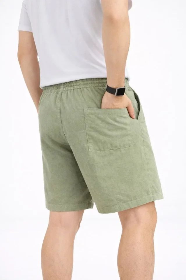 Erkek Keten Kumaş Cepli Rahat Kesim Bel Lastikli Şort - Mint Yeşili