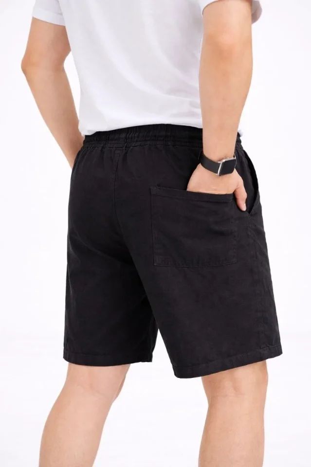 Erkek Keten Kumaş Cepli Rahat Kesim Bel Lastikli Şort - Siyah