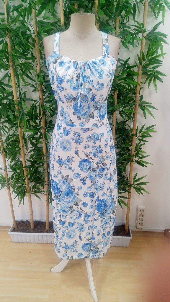 Kadın Askılı Geniş V Yakalı Sırttan Bağlamalı Yırtmaçlı Süprem Elbise