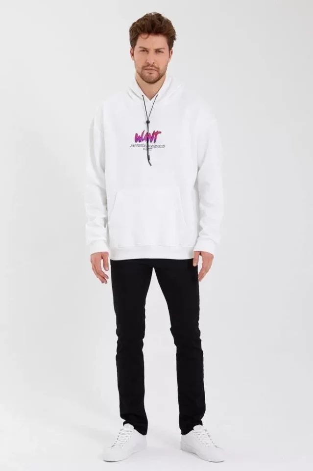 Baskılı Oversize Bisiklet Yaka T-shirt - Beyaz