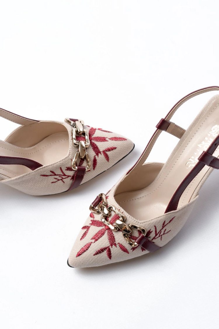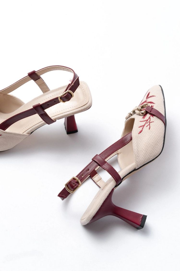 Keten Arkası Açık Tokalı Topuklu Kadın Ayakkabı