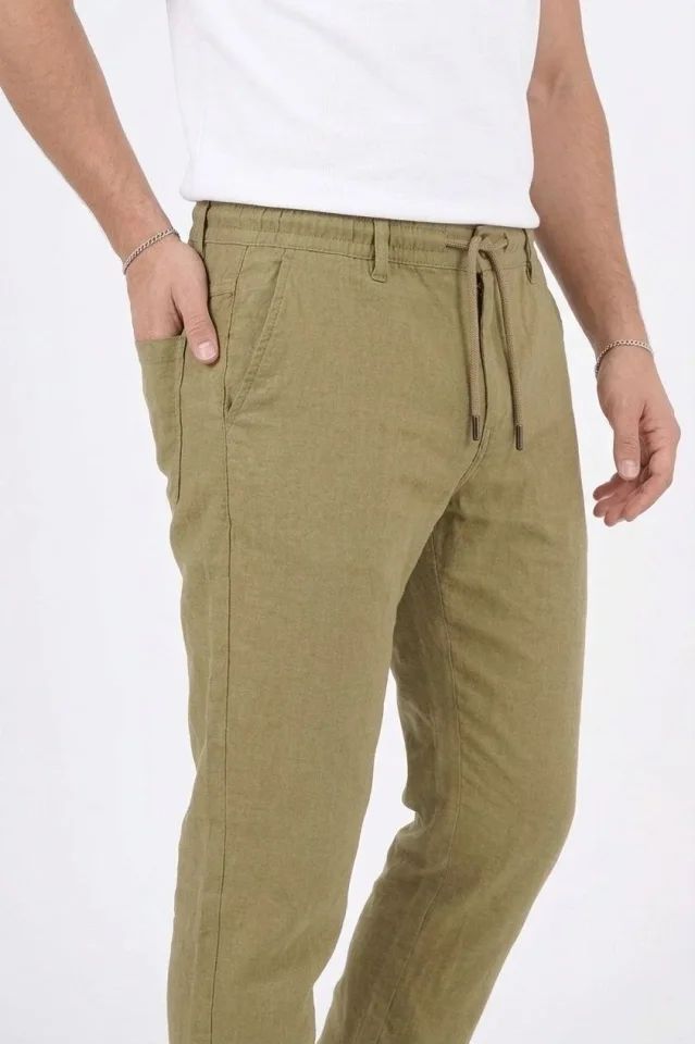 Erkek Keten Cepli Pantolon Lastikli Bel Bağcıklı Önden Fermuarlı - Mint Yeşili