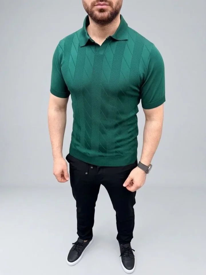 Erkek Yazlık Triko Dokuma Tişört Kısa Kol Polo Yaka T-Shirt - Koyu Yeşil