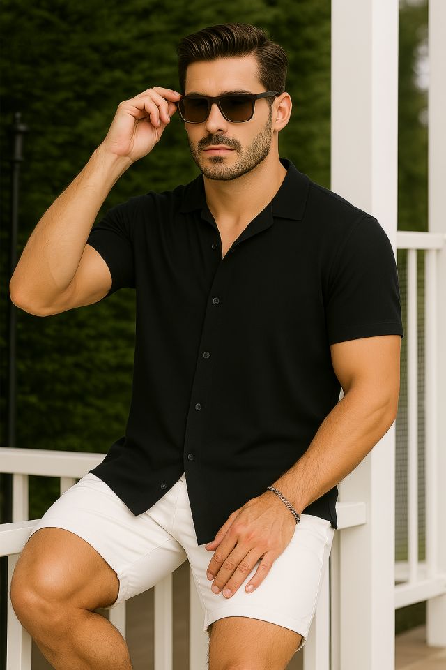 Erkek Tropikal Palmiye Desenli Kısa Kol Gömlek Yazlık Rahat Kalıp Dijital Baskılı - Desenli