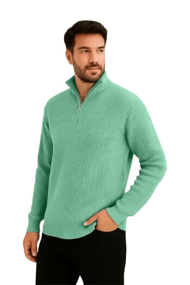 Modern V Yaka Fermuar: Şıklığı ve fonksiyonelliği birleştiren fermuar detayı, kazağa sportif ve maskülen bir hava katar.