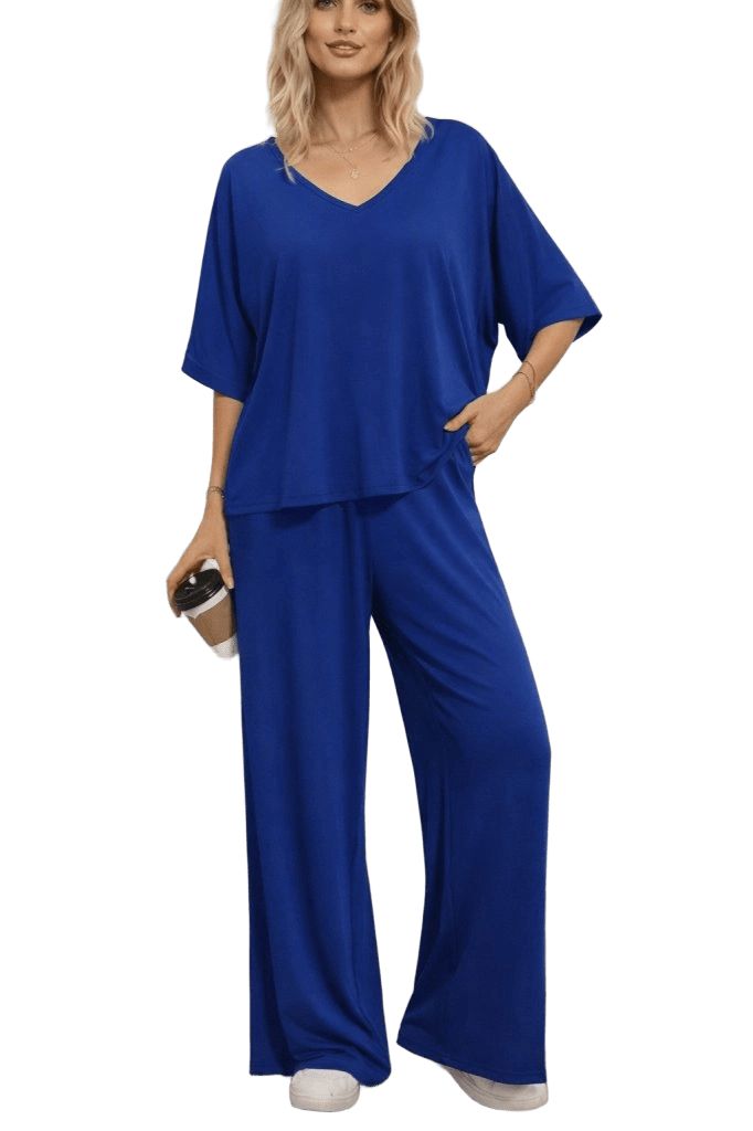 Kadın Kısa Kollu V Yakalı Viskon Bluz ve Pantolon İkili Takım