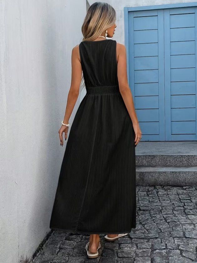 Kadın Askılı Kruvaze Yakalı Belden Dantelli Uzun Bürümcük Elbise