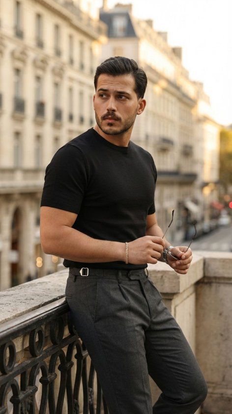 Erkek Basic Bisiklet Yaka Kısa Kollu Triko Tişört - %100 Pamuk Akrilik
