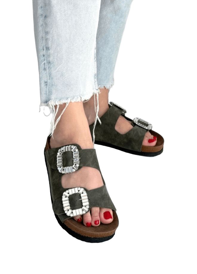 Nool Yeşil Nubuk Kemerli Terlik