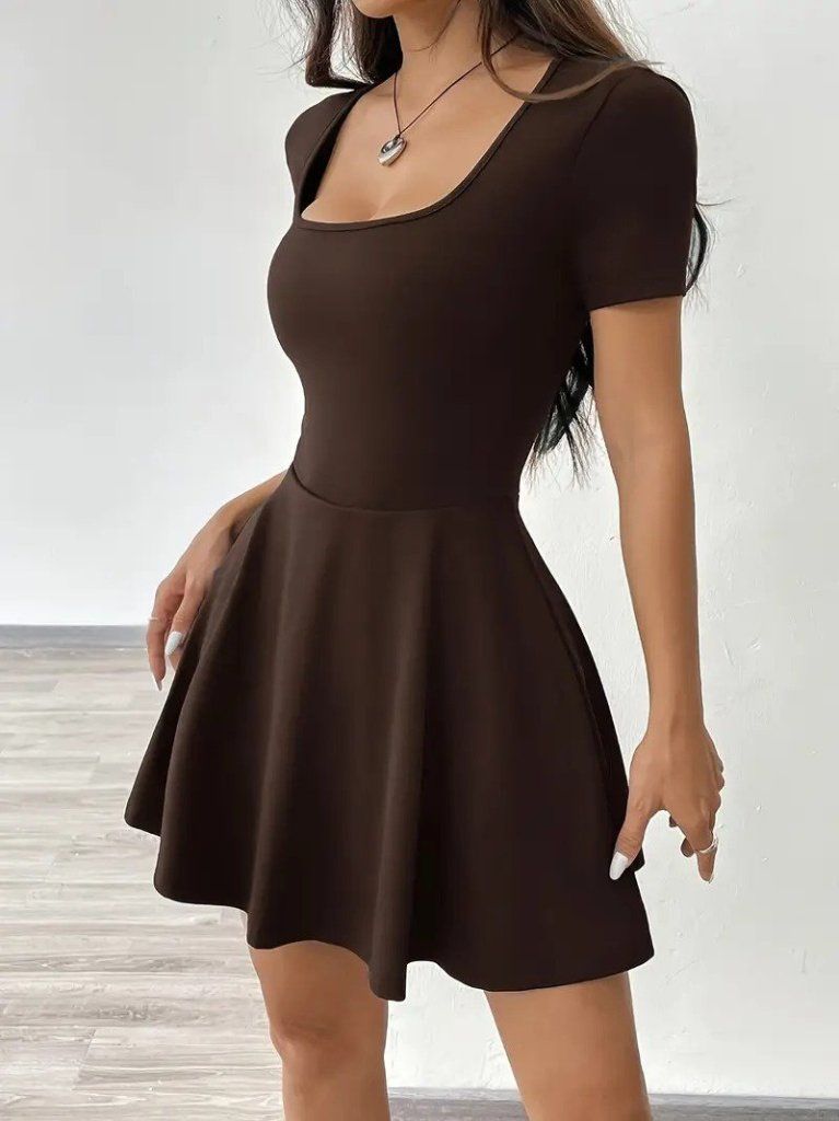 Kadın Kısa Kollu Kare Yaka Short Detaylı Cepli Dalgıç Elbise