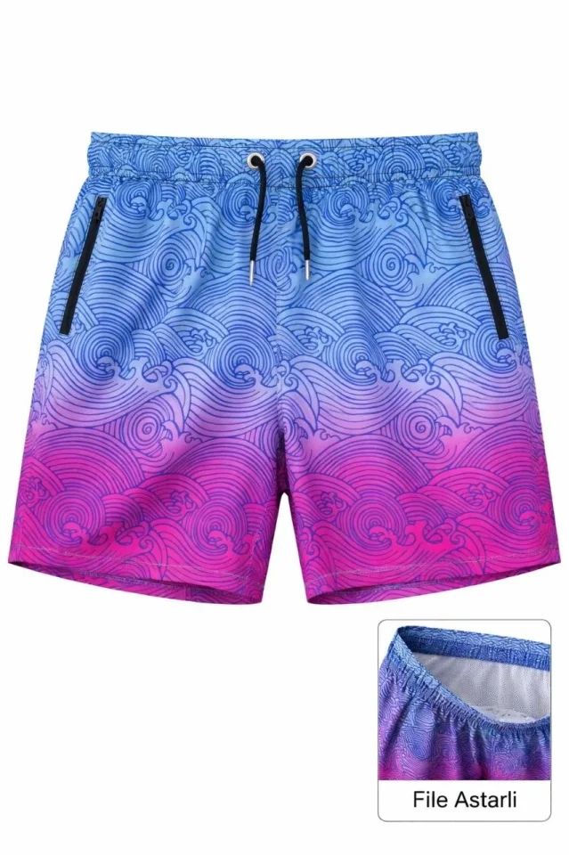 Erkek Deniz Şortu Fermuarlı Cepli File Astarlı Hızlı Kuruyan Premium - Çok Renkli