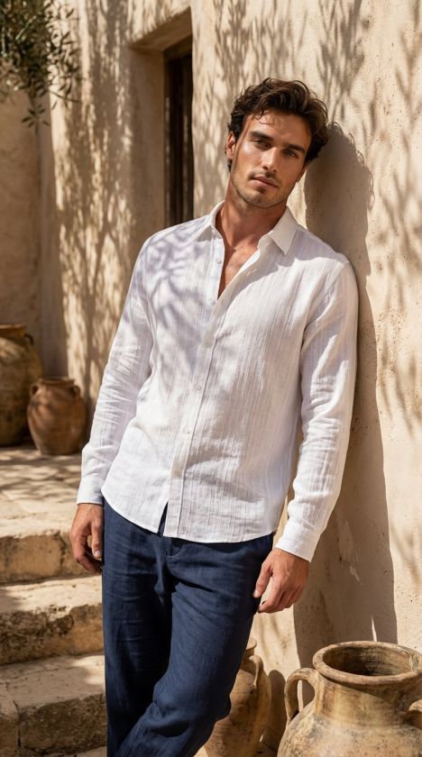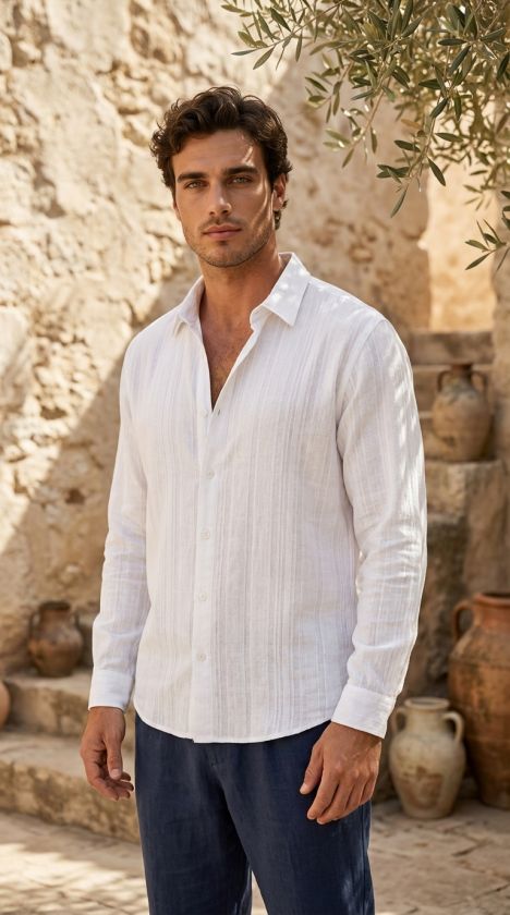 Erkek Armürlü Yarım Oversize Müslin Gömlek