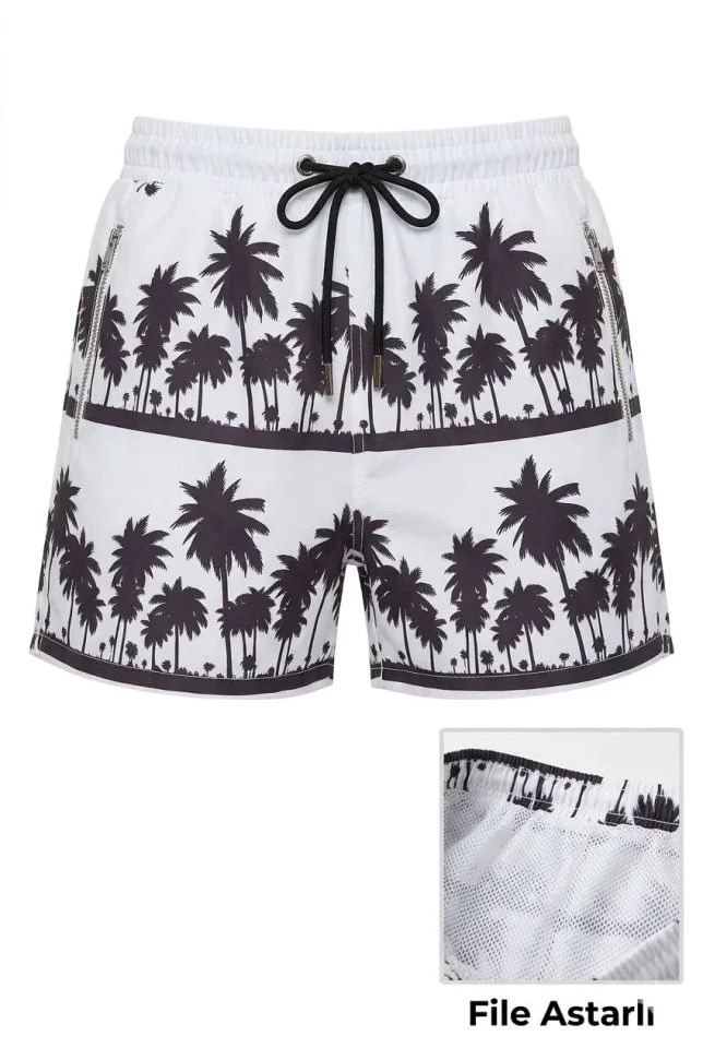 Deniz Şortu Fermuarlı Cepli File Astarlı Hızlı Kuruyan Premium - Beyaz