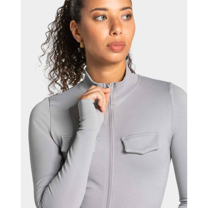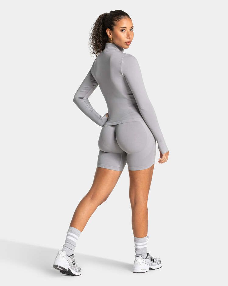 Teveo Gri Fermuarlı Seamless Spor Ceket - Modern ve Fonksiyonel Tasarım