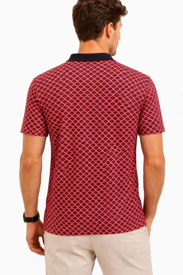 Erkek Pike Kumaş Polo Yaka Desenli Tişört Kısa Kol Yazlık T-Shirt - Kırmızı