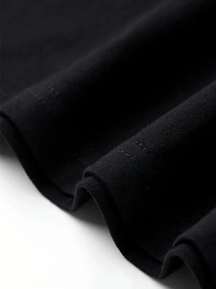 Rahat Bisiklet Yaka Tişört, Yaratıcı Karikatür Baskı - Yumuşak Polyester, Her Mevsim Giyilebilir- Siyah