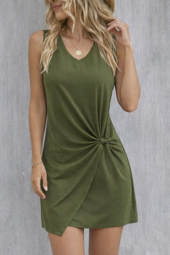 Kadın Askılı V Yakalı Yandan Asimetrik Detaylı Kısa Viskon Elbise