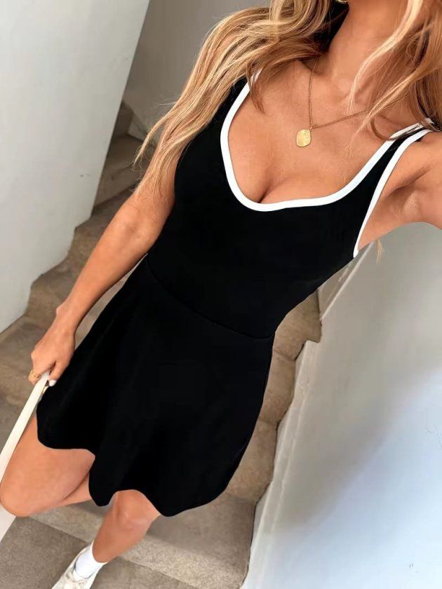 Kadın Askılı Kalp Yakalı şerit Detaylı Dalgıç Kısa Elbise