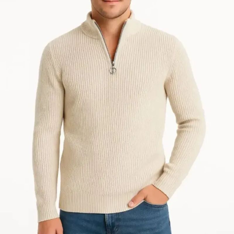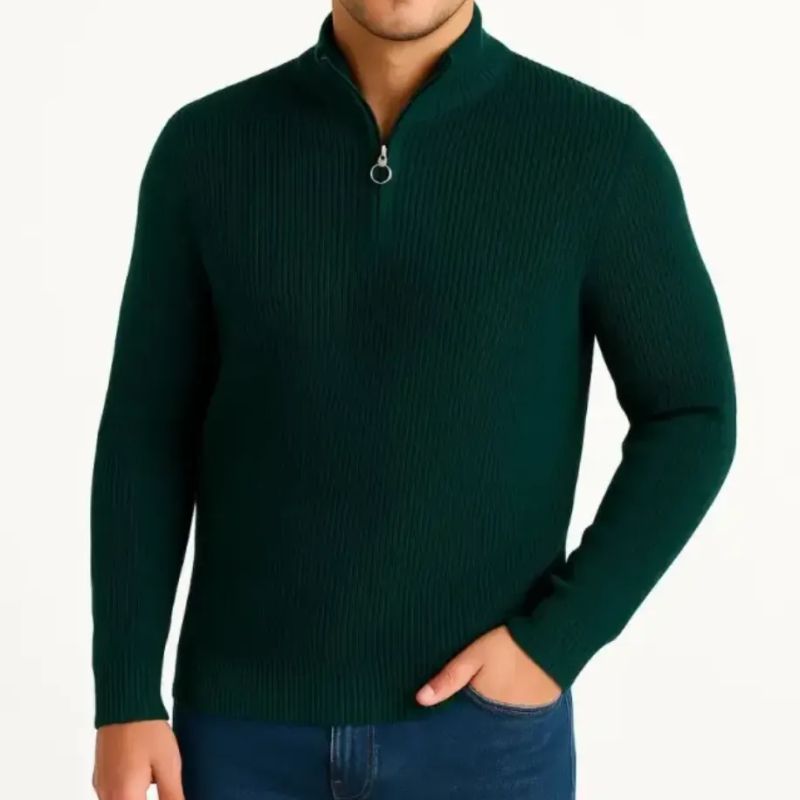 Erkek Yarım Fermuarlı Selanik Örgü Triko Kazak
