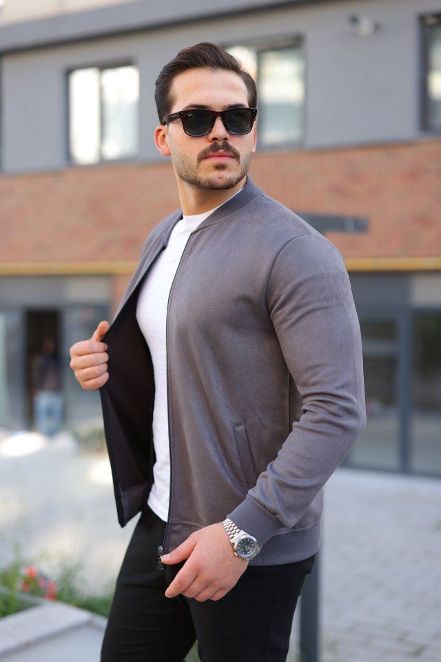 Erkek Scuba Süet Kumaş Bomber Hırka