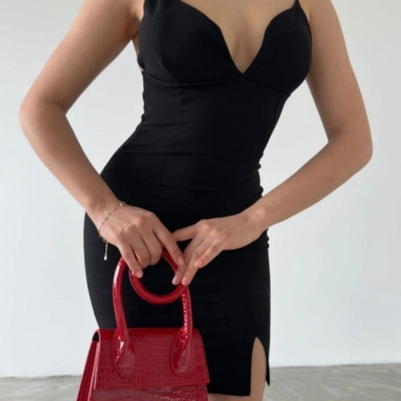 Dalgıç krep kumaşın vücudu saran ve toparlayan özel dokusunu minimalist bir tasarımla birleştiren bu mini elbise, hem iddialı hem de zarif bir silüet sunuyor. İnce askıları ve vücut hatlarını vurgulayan kalıbı sayesinde özel davetlerden gece eğlencelerine kadar her ortamda tüm bakışları üzerinize çeker. Kumaşın kendine has tok duruşu, formunu uzun süre korumasını sağlarken, mini boyuyla modern ve dinamik bir stil vadediyor.