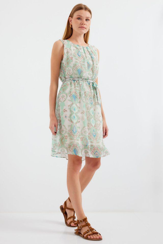 2501 Desenli Sıfır Kol Şifon Elbise - Mint