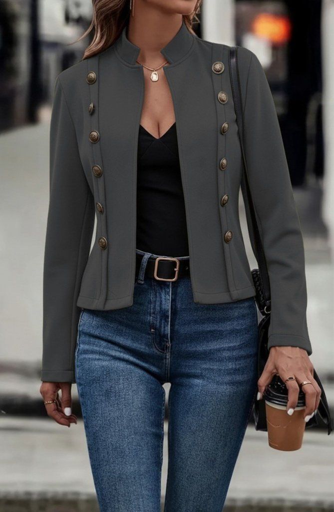 Kadın Uzun Kollu Hakim Yaka Yanlardan Düğmeli Kısa Süet Ceket