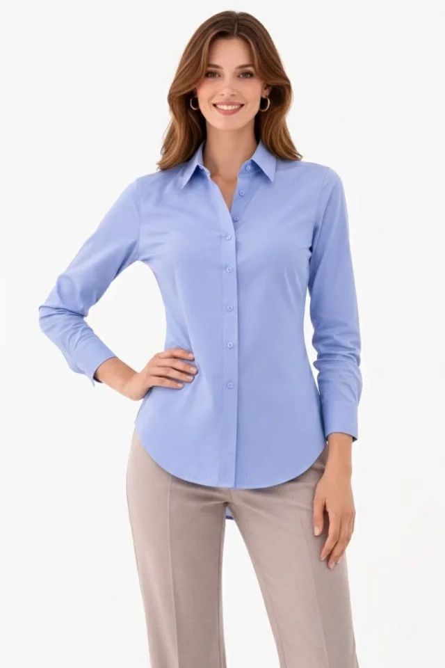 Uzun Kollu Gömlek Düğmeli Klasik Yaka Günlük Ve Ofis Şıklığına Uygun - Mavi