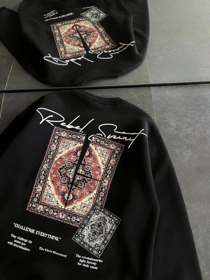 Bisiklet Yaka Baskılı SweatShirt - Siyah